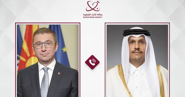 Премиерот на Северна Македонија, Христијан Мицкоски, денеска остварил телефонски разговор со премиерот и министер за надворешни работи на Катар, шеикот Мохамед бин Абдулрахман бин Џасим Ал-Тани, јави Катарската новинска агенција.